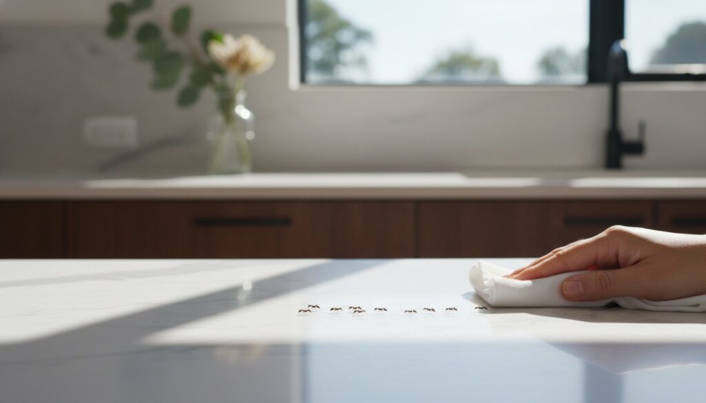 Spotted a line of ants marching across your kitchen bench? Don’t panic. For small-scale incursions, immediate action with household items can provide temporary relief. These methods are your first line of defence, designed to manage the ants you can see and disrupt their activity. It is important to understand that these are temporary, safe measures that focus on cleaning and deterrence, not colony elimination. If you’re looking for a quick answer on how to get rid of ants right now, consistency with these steps is crucial for them to have any effect.